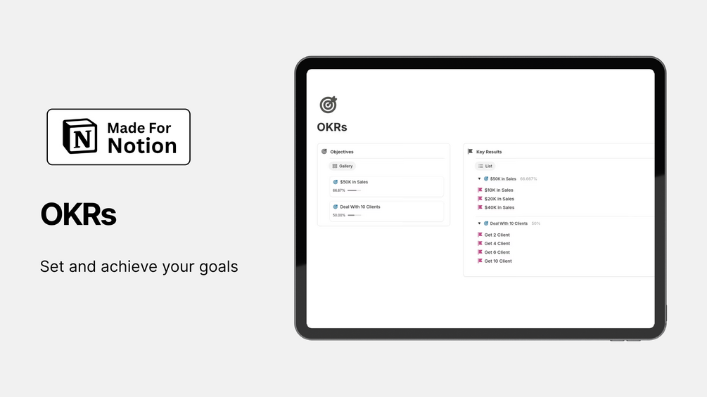Set and achieve your goals with this free Notion OKRs Template — designed for individuals, teams, and startups looking to stay focused and aligned.