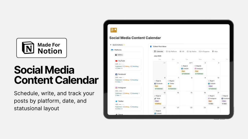Perfect for creators, marketers, and small teams who want an easy way to manage content across multiple platforms — all in Notion.