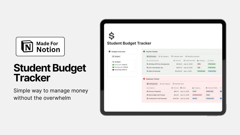 Take control of your student finances with this all-in-one Notion Student Budget Tracker — built specifically for students who want a clean and simple way to manage money without the overwhelm.