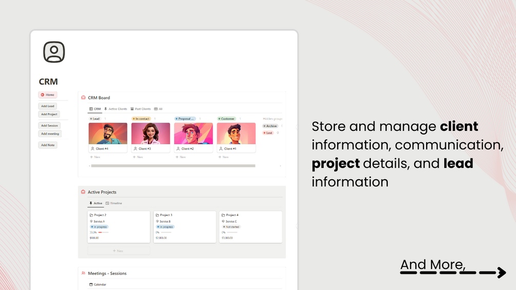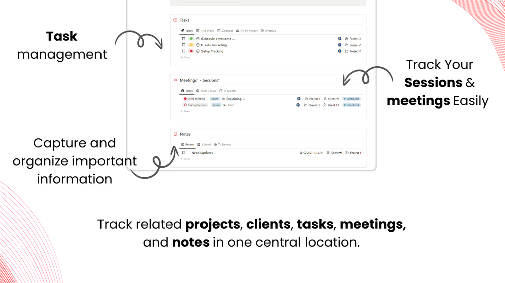 ✓ Meetings & Sessions: Schedule and manage all your meetings and client sessions. Keep notes and action items organized for easy reference.