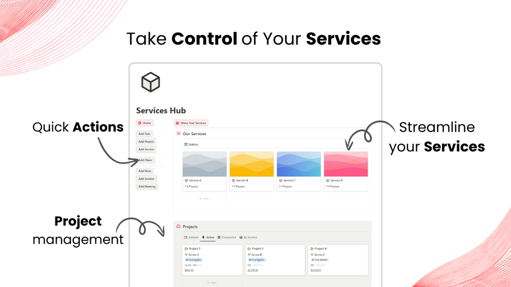 ✓ Services Hub Dashboard: Get a clear overview of all your services in one dashboard. Easily manage offerings, track services & projects, and analyze performance metrics to optimize your approach.