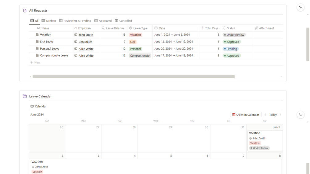 Say goodbye to messy spreadsheets! This Notion template provides a centralized system to manage all your employee leave requests and approvals.