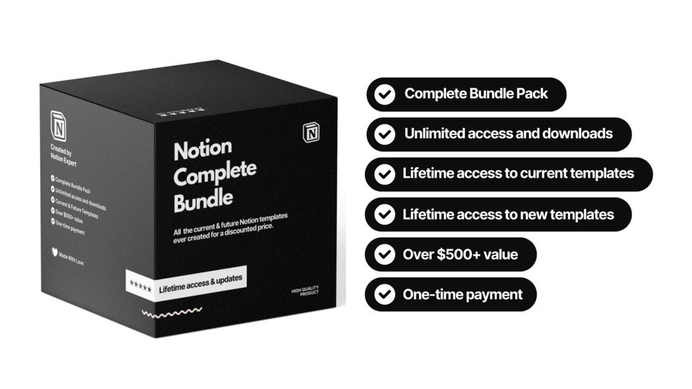 Get lifetime access to all Existing and Upcoming Notion templates at any time.